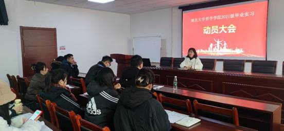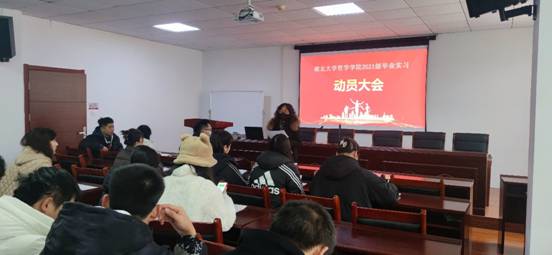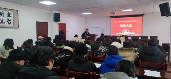 2024年3月1日上午11:00,学院在逸夫人文楼D2008会议室开展了2021级本科生毕业实习动员大会。本次动员会由经理助理陶文佳老师主持,公司党委副书记王翠、团委书记董力、2021级班主任庄严和2021级全体本科生参加了本次会议。
